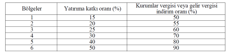 Bölgelere Göre Vergi İndirimi Oranı